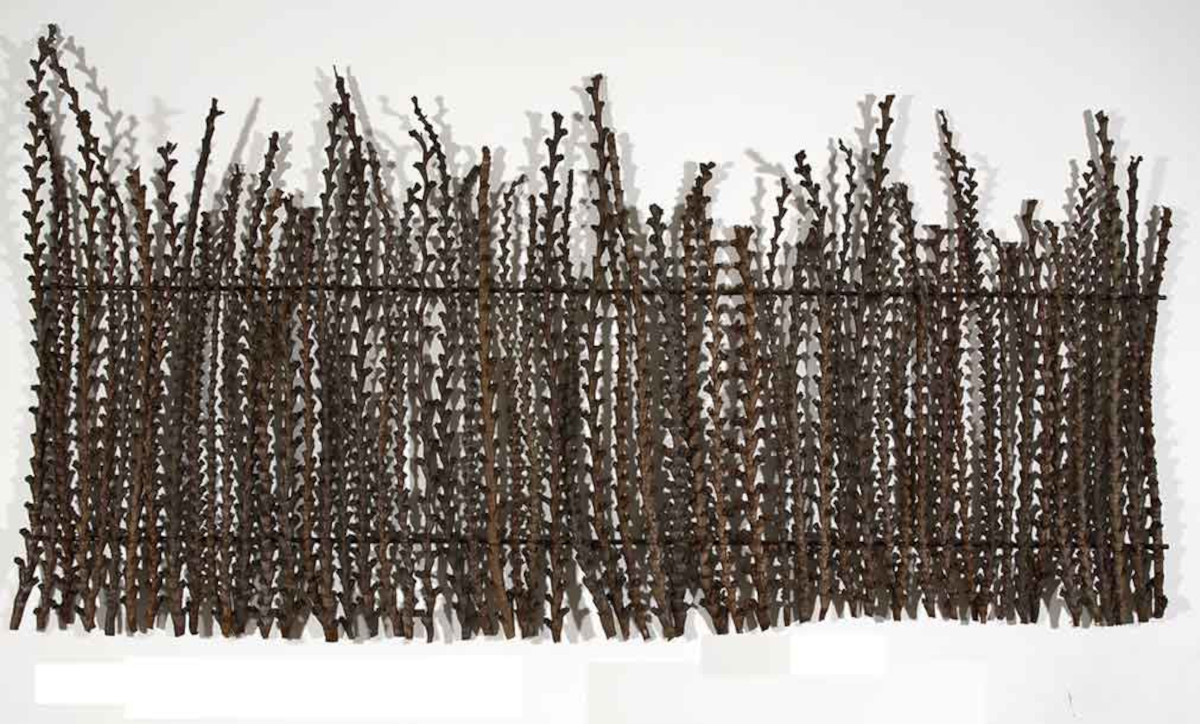 Estrutura de ferro, sustentáculo dos frutos do Buriti e linha encerada