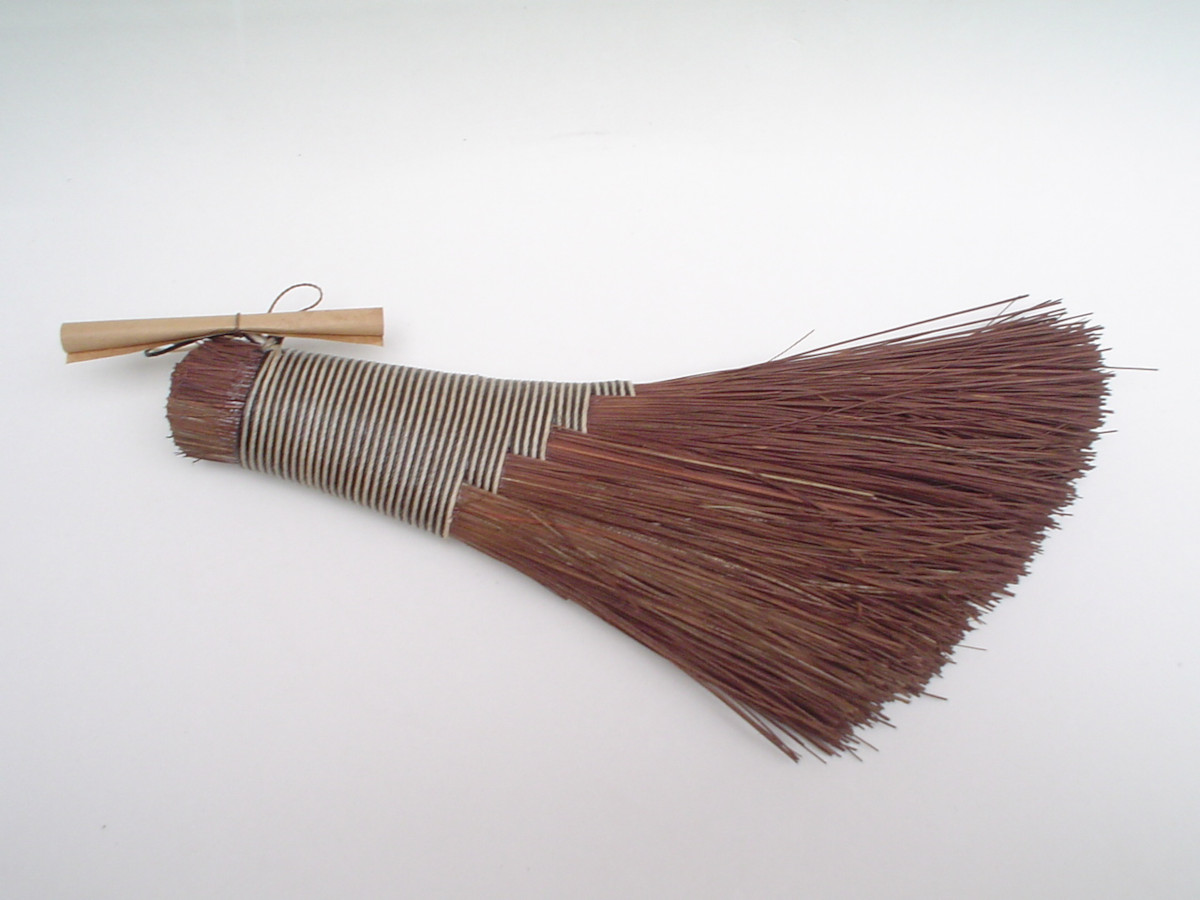 Vassoura de Piaçava amarrada em formato diagonal. Utilitária, decorativa, além de amuleto para limpar ambientes.